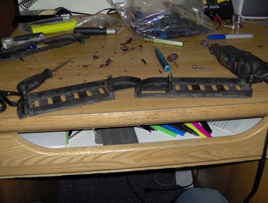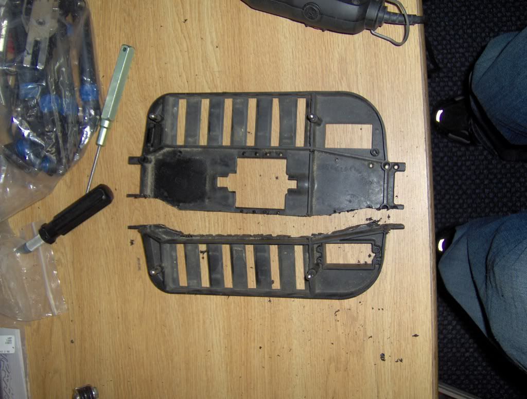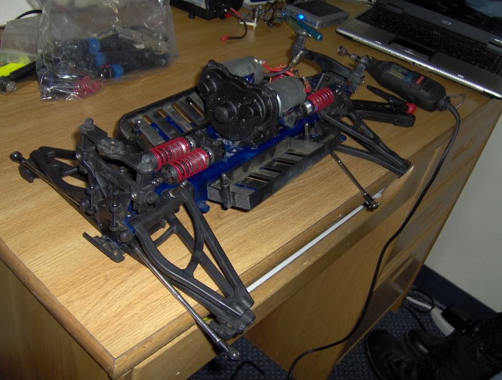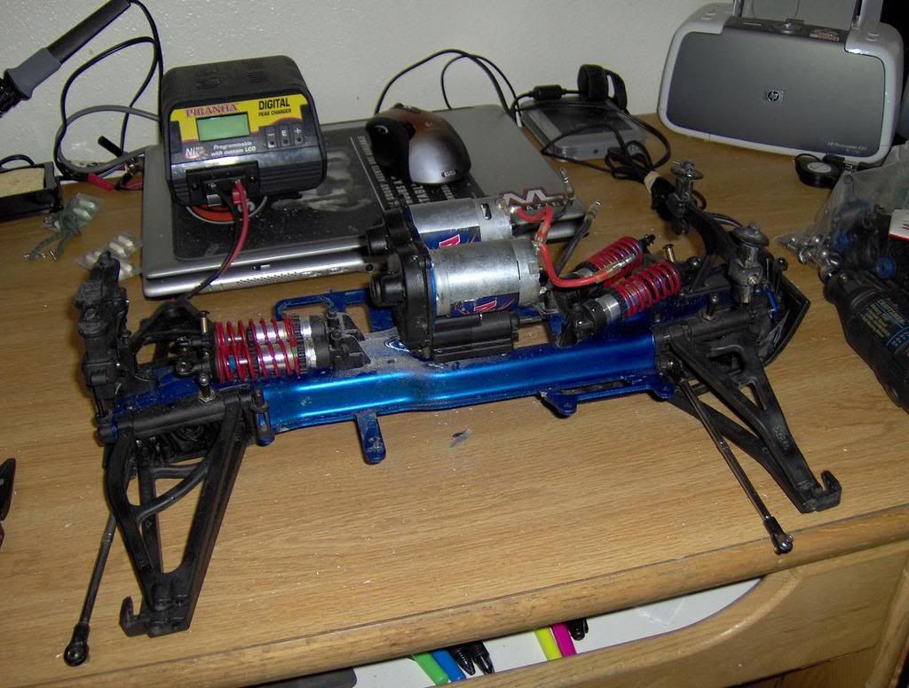 http://img.photobucket.com/albums/v2...o/HPIM0949.jpg http://img.photobucket.com/albums/v2...o/HPIM0951.jpg http://img.photobucket.com/albums/v2...o/HPIM0953.jpg Radio box mocked into place- http://img.photobucket.com/albums/v2...o/HPIM0954.jpg EVX mocked up, I'm pretty sure I'm gonna make a support/mounting plate for it. I don't want it all the way back by the body mounts but I also don't want it too far forward over the shocks- http://img.photobucket.com/albums/v2...o/HPIM0956.jpg That's it for today. I'll post up more info and pics when I get some free time ;) |