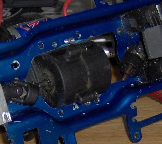 I used the long shafts because they're easy to cut down and are good spares for any shaft on her E-Revo or my Revo. Those braces actually keep the rear end from flexing. The one with the screws matters most since it is actually keeping the two front halves of the bulkhead in place. You could leave them out, but I won't. In my opinion, it will only be a matter of time before you hear some clicks and moans coming from your rear end. I've had a 2.5R, a big block, and now a TZ-TX in my Revo and the rear end is still in good shape. I just took the rear diff apart, cleaned, lubed, and threw it all back together. Everything looked great and as long as I take care of it and keep the slipper properly adjusted it will be fine. Same thing for a brushless truck, keep that area braced and you should see a good life span out of the rear diff. If you start blowing ring gears, try a aluminum cup and shim it well. |