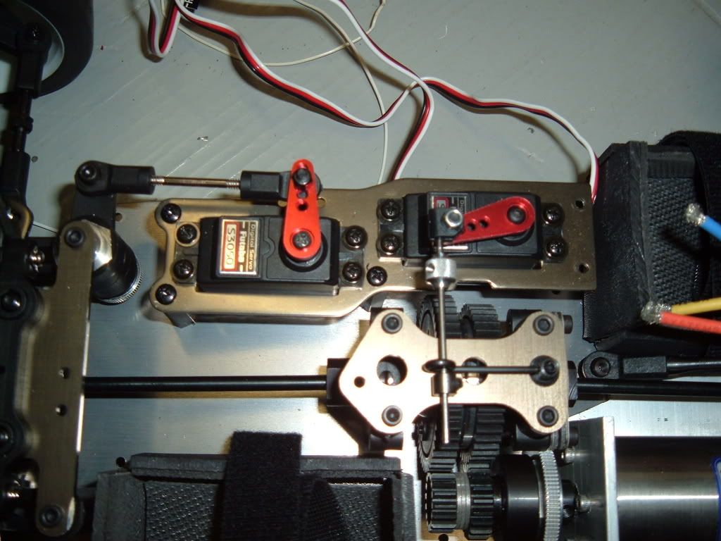 Ok, pretty much finished with this project. My motor mount is done, and I have made an esc mount plate for the quark airmaster 125. Wired it up, and set my new futaba 3pm to mix the brake channel (3rd) with the throttle channel (2nd). I programmed the esc and it works great. Nice that the brake servo does not move with the throttle, only when braking. I will have to do this mod with my revo too.