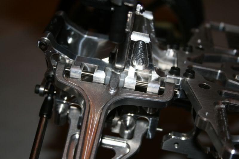 Squee - I'll try that when I start with the front, but my impression was the gaps at the front and back are bigger than the caster shim - it'd allow back and forth arm movement on the hp. I'll check into that. I've never bent a hp, but it dawns on me it might be better to support the ends rather than the middle. I don't have enough to to both unless I get more. I bet you're more likely to bend a hp at the end that in the middle.... I got the rear finished last night and really like how the 3.3 stuff fits and looks. TRX really made those pieces hefty this time. The tbs are thicker than the UE tbs. Will get to the front end after lunch and a few chores later this afternoon. GM360 - in the middle it makes for a tight fit, arm can't move. |