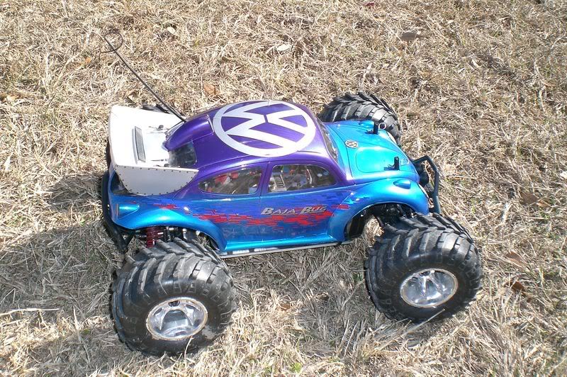 upfront, i had the quality turned down on the cam because i used a small sd card. its runnnig 4s2p a123 mm mmbec 10L feigao mashers2000 and a hpi mt bug body i just installed this morning. i've been mostly concentrating on my emaxx and this has been 2nd choice since day one. i really like how it drives. so much more predictible and nimble over the maxx. any ways, no high speed runs on here, although i got pretty close to top speed a time or two. i found out today i may be a bit under geared. the motor is running a little on the warm side and the esc is dead cold.