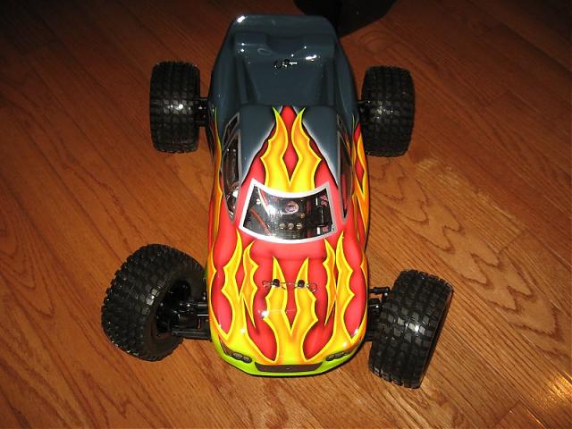 Well I had some time and finally got the body mounted on my ext CRT.5. I had to get some larger/longer body body mounts and modify them...turns out that I was not able to use the truggy wing.