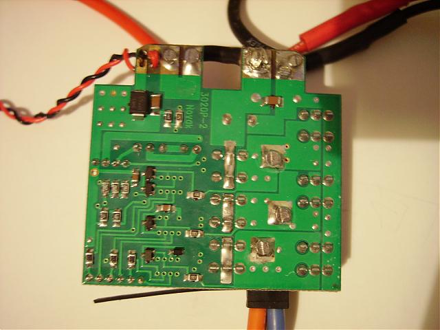 All I did to fix it up was extend the rather short motors wires back out to stock length ( I finally mastered butt jointing wires, looks so much neater than my usual efforts), and re-instate the battery leads for dual pack operation; no plugs on there, but hopefully the future new owener will prefer to choose their own regardless, and solder them on.