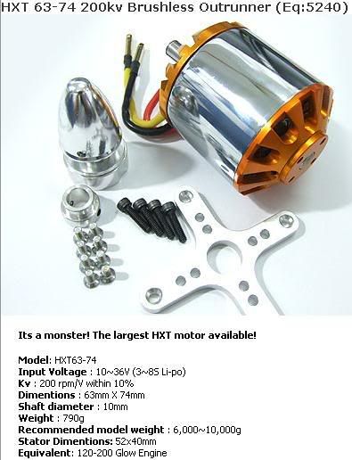 Hmmm... When I buy the 5b either on monday/tuesday or wednesday this week Ill see if I can put an order on the motor and the ESC. That way I will not be able to change my mind on this seeing that Ill try to many times. I still have to see what Im gojng to use for a motor mount. Im thinking .50in tempered plexiglass 12x12 sheet off ebay for $20. The main think Im worried about is the burst current draw from the giant outrunner. If I gear it just right hopefully it wont try to draw more than 150a cont otherwise my lipos are screwed... If you guys have any suggestions please let me know.