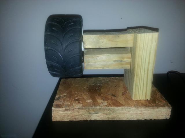 Here is my wheel balancer. Using some spare parts from a DM1 roller and some 2x4 I had lying around...I built this. Not much to look at but works great and the best part...is was free. That is a win win.
