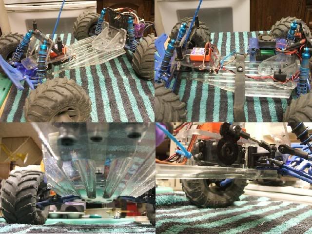 Now 4s in the rustler is fun. It wasn't long ago that I was say 2s is plenty fast. Lot os fun. Well didn't start out that way. I bought an Ammo 36-50-3300 (price is too good not to at least try it) and also a 12s. The ammo got here first. So put it in my rustler with 4s and notice it had a lot of punch even sitting on the bench. Turned out the exp so was so sensitive. Got it out in the street and WHAM. It flipped over backwards so hard it snapped my lexan chassis in half. A bit bummed it was a homemade job and put a lot of time into it routing out the bottom, shaving off weight, polishing. It wasn't the thin stuff either this chassis was made out of 3/8" lexan. Well it was starting to crack around the transmission mounting screws on one side. So I didn't get much run time that night on the ammo swapped everything onto a stock chassis. But the last couple of days I've been running it on 4s and it is a screamer. I order a couple 3s lipos to use for it. Don't seem to ever get full throttle on 4s. Got a fan on the motor and MM and they've been running pretty cool. Using 58/19 was the best I could come up with for gearing but seem pretty good. Got the 12s in and might give it a go in the stampede. If it does as well or better then the ammo I'll be happy. Thanks for the input you guys.