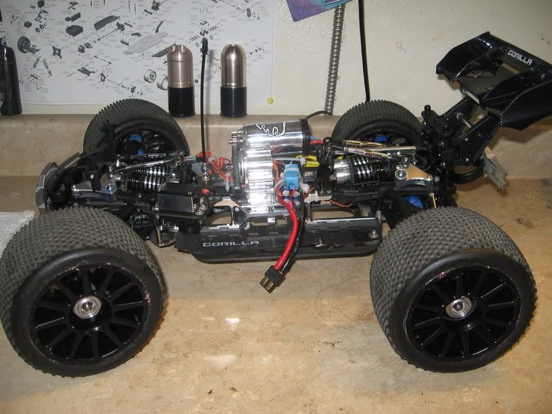 I just need a opening setup to work with, here are what i plan to add to it. The platnium series variable pistons and possible upgrade to v.3 Rc Monster 1/8 buggy diffs. I also am thinking of doing the New Emaxx tranny or E-revo tranny, I really want a center diff, but don't think mike is going to follow through on the slipperential. I like the Losi wheels and tires off the truggy, so i'm going to run them. Any help on setups will be greatly appriciated