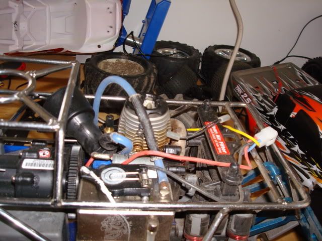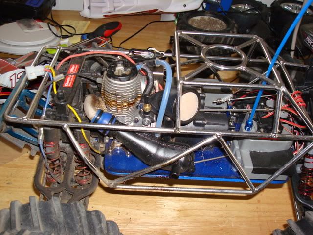 and no i wont get rid of the roll cage. she has already proved her usefullness and i also like the look of the cage. currently need some heat shielding for the fuel lines. jsut so you know the heat form my motor melted the stock traxxas heat shields. anybody got any suggestions?