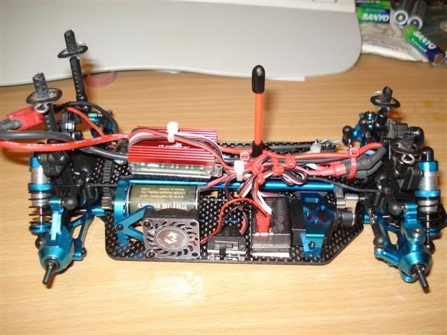 These pics were taken before the addition of the lipo, rear alloy hinge pin retainer & front carbon shock tower.