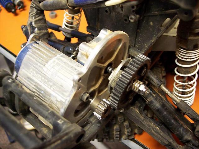 i just finished putting new bearings in my 9l, got a new spur gear, new drvie shafts and replaced my right drive yoke today so i threw the badlands on there and went to to play a little, and i was doing back flips about 20' long and a couple feet over my head in height, which is pretty normal stuff and all, so after about the 10th flips it goes upside down and i gas it to bring it on around and POW the tranny just exploded and locked the wheels up in mid air! here is waht she it looks like, and it also ripped the left driveyoke off.....