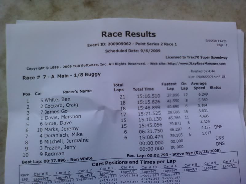 started off the day well, had to pick up a set of brand new set of Crime fighters for my 8ight, ran the first qualifier and placed 3rd, my MMM keep shutting down on me...