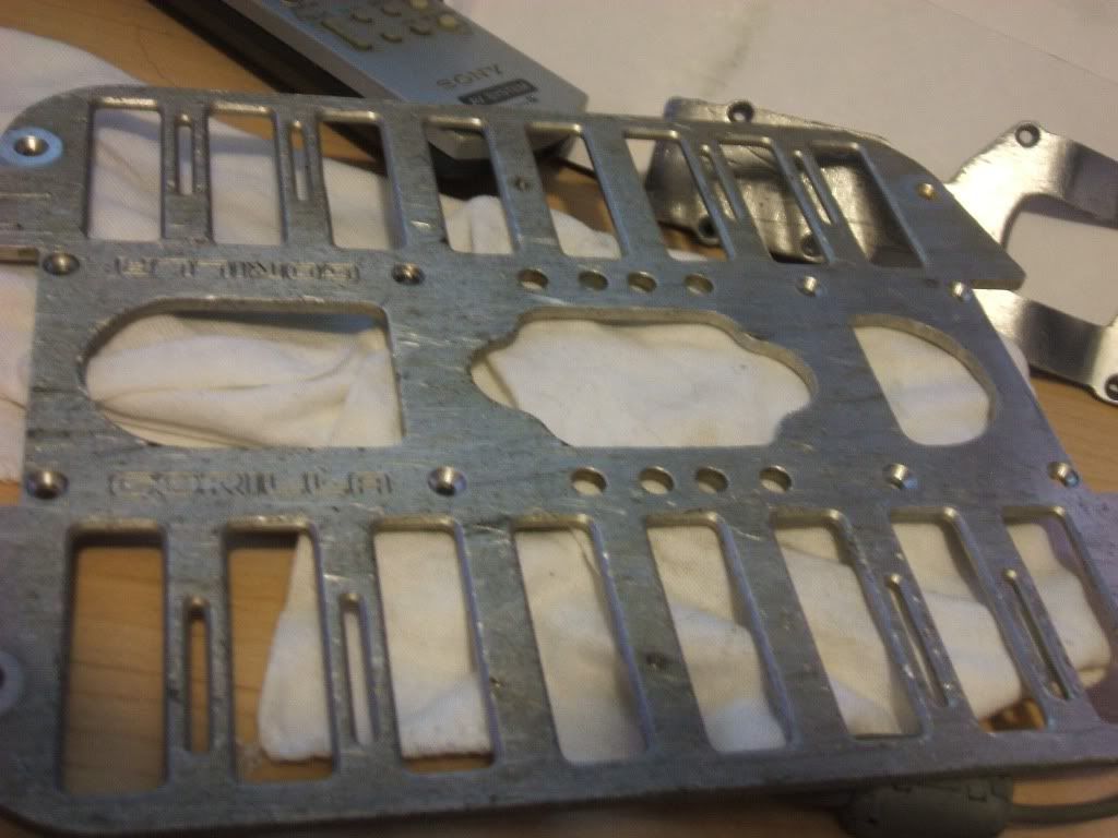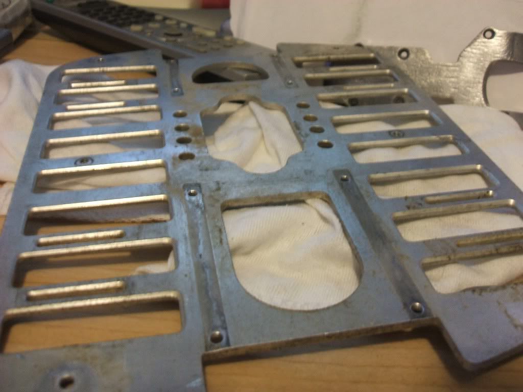I got some cleaning and polishing tips from Shaun before his sudden departure from us. So I tried some wine and started working on it between 1:00 am and 4:00 am. I think he was pulling my leg. lol If anyone has any tips for the restoration of aluminum product please share. In the meantime I will be substituting his taste for wine with something that I prefer. I started on the front plate and took some off the top to try and smooth out some of the gouges. Looks a little better but is going to take some more work.
