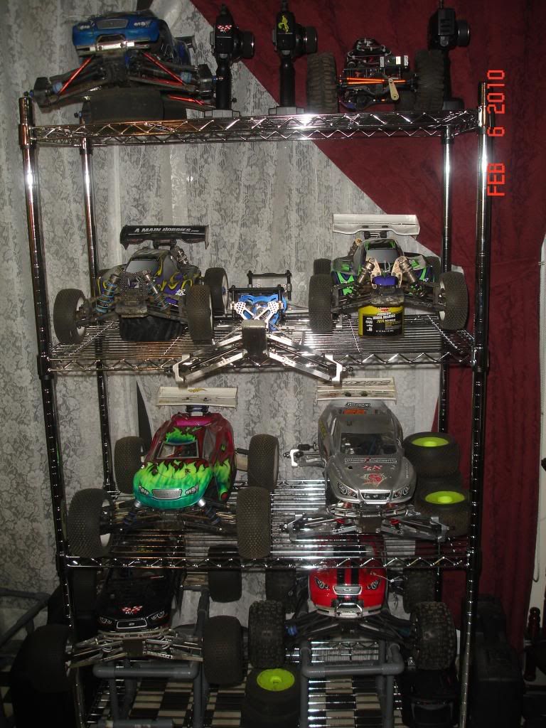 The trucks. Not pictured is the other thunder. The thunder, Predator, and the Revo on top are still nitros. The thunder not pictured will be brushless.