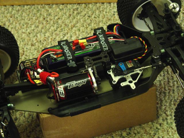 This is my first BL conversion. Also my first build of a truggy. Nice quality parts, both Mugen & RCM. Setup is stock (per supplied setup sheet). It was a pain to apply that sticker skin. We'll see how long that lasts.