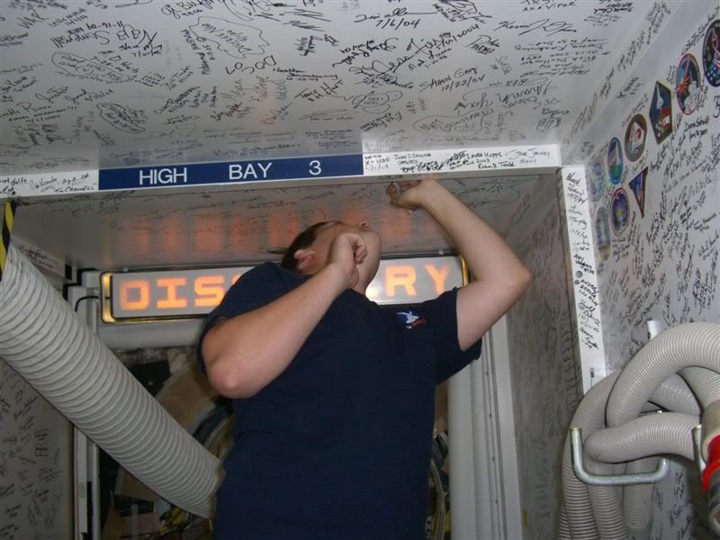 The space shuttle is one amazing machine. When I was working in Orlando we actually did some work at Kennedy Space Center in one of the shuttle bays and I got a tour of the shuttle Discovery. Not just outside but INSIDE too. Had to put on a clean suit and go through a clean room airlock chamber. They even let me sit in the pilot's chair. It was awesome to say the least!