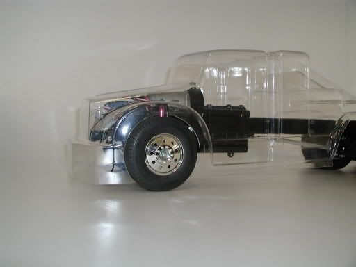 "Draggular" (version one) was basically a lexan big rig shell dropped over the stock chassis of my king hauler, slapped on a big wing out back, gave it a paint job of a slightly different nature, removed all the chrome bits, just to save weight and also not to get them scratched when i flip the truck....i knew i would.