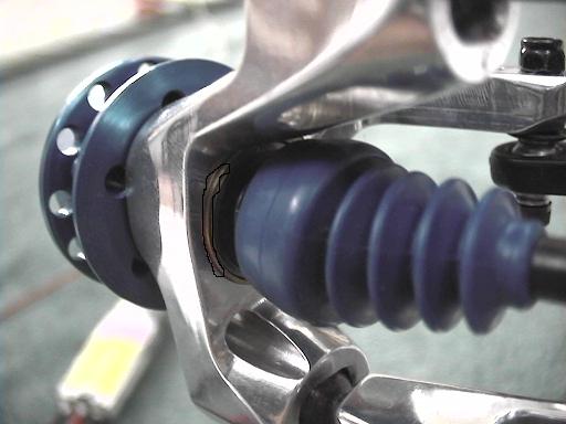 There is also a pic of the ceramic bearing resting inside the copper sleeve I made in a lathe shop to make the 15mm size bearing fit in the 16mm hole of the UE knuckle.