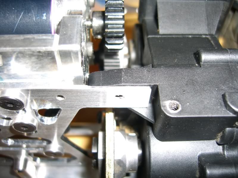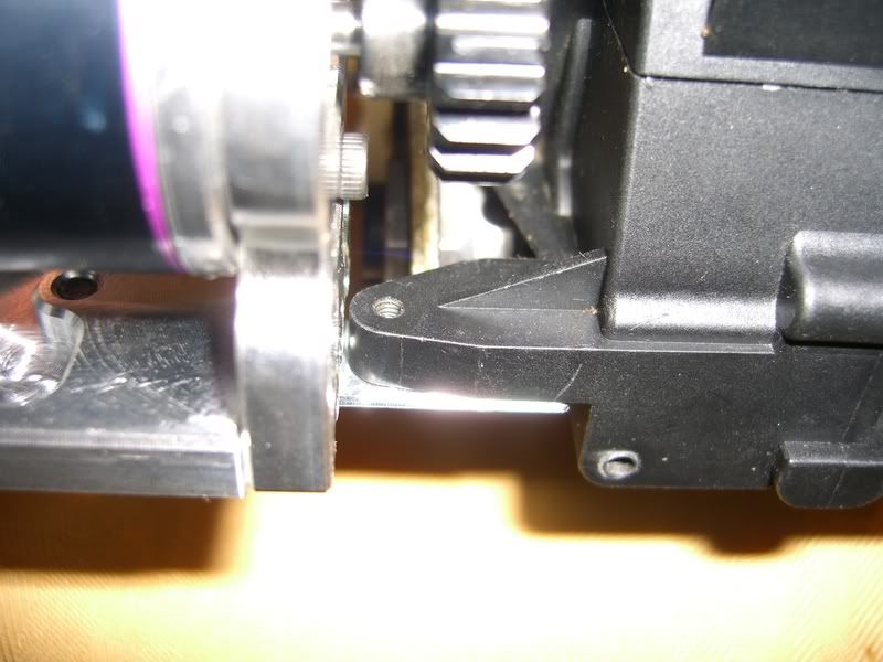 Thanks Rene, I found the nitro motor plare braces and will drill one out to 4mm. FYI the tranny holes do not line up, almost 1/4" off. Not really a problem, as it is plastic and some small holes can be drilled/reamed in the correct places.