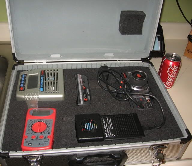 i got this al. case at Menards,in the hardware section, im sure other hardware stores will have them as well, it cost like $20...and it fit alot of stuff, it is wired up underneath the foam so i can plug my charger in directly