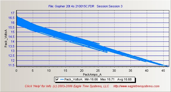 Here is a chart of a pair of 25C trakpower 2s 4900 bricks that I'm returning for exchange. Much to my surprise they don't even perform as well as my previous 20C packs.