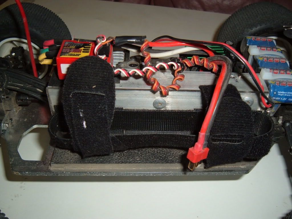 Battery tray is just an al angle with a piece of plexi riveted to it. I use verlcro straps to hold the battery in, around the length and top to bottom.