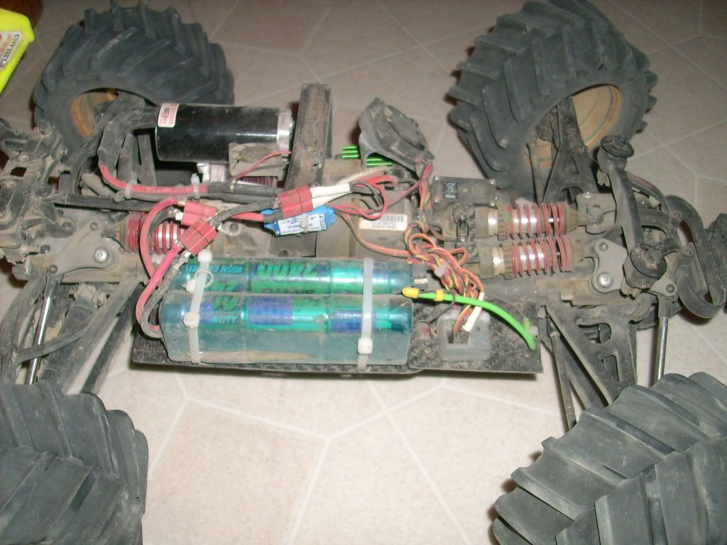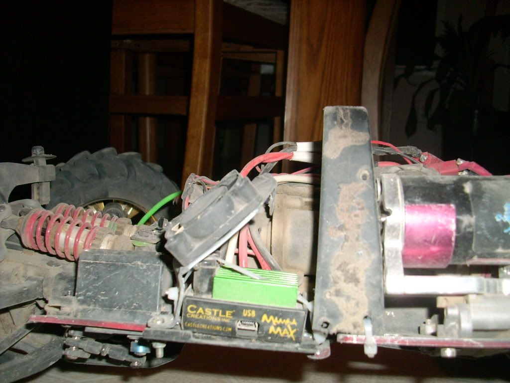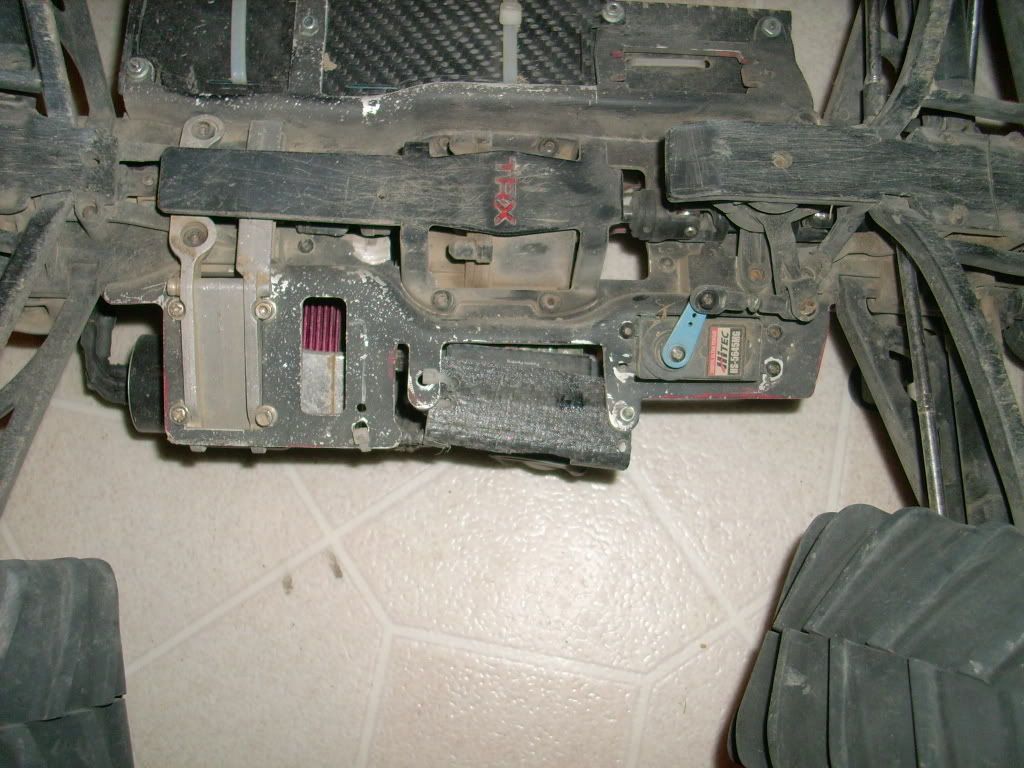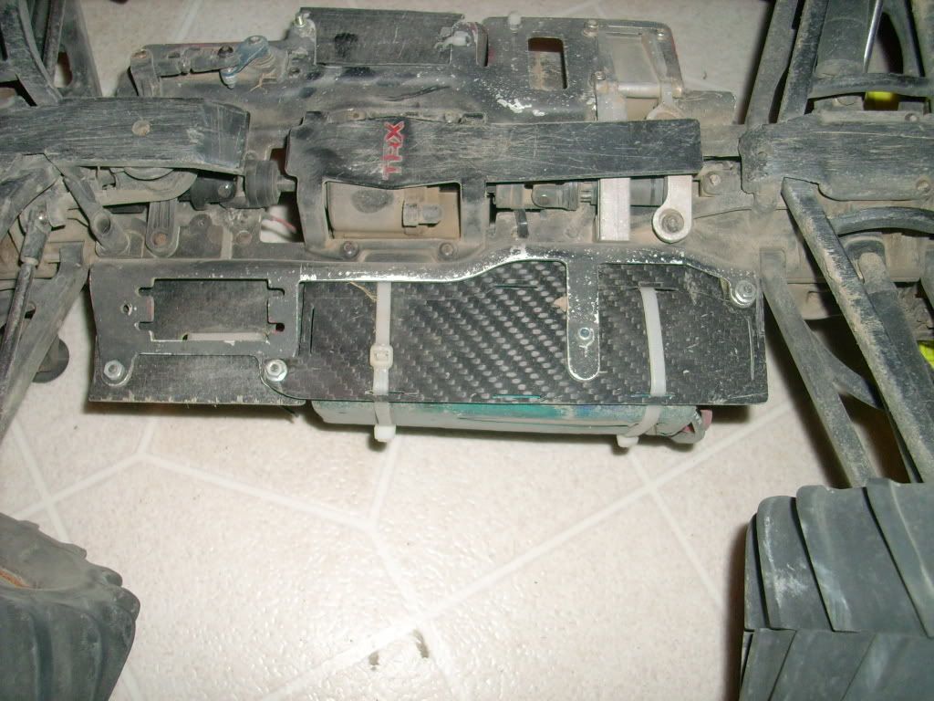 i custom made a CF battery tray, esc mount, receiver and on/off switch mount. the tranny is locked into second gear (wide ratio kit) also running a center diff (need thicker oil..only 100K) cant wait to get a 4s lipo thatl make this truck scream!!!