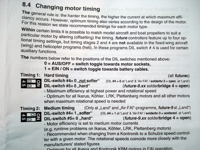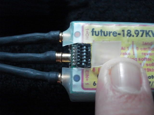 .....i picked up 2 New esc's and one of the pics shows the way they were set!...i ran them with two Bigmaxximums and 24cells(nickel)...they ran good,but i think they might run better if the DIP switches were set properly!...i have been into NITRO,this is my first electric...i am learning as i go!