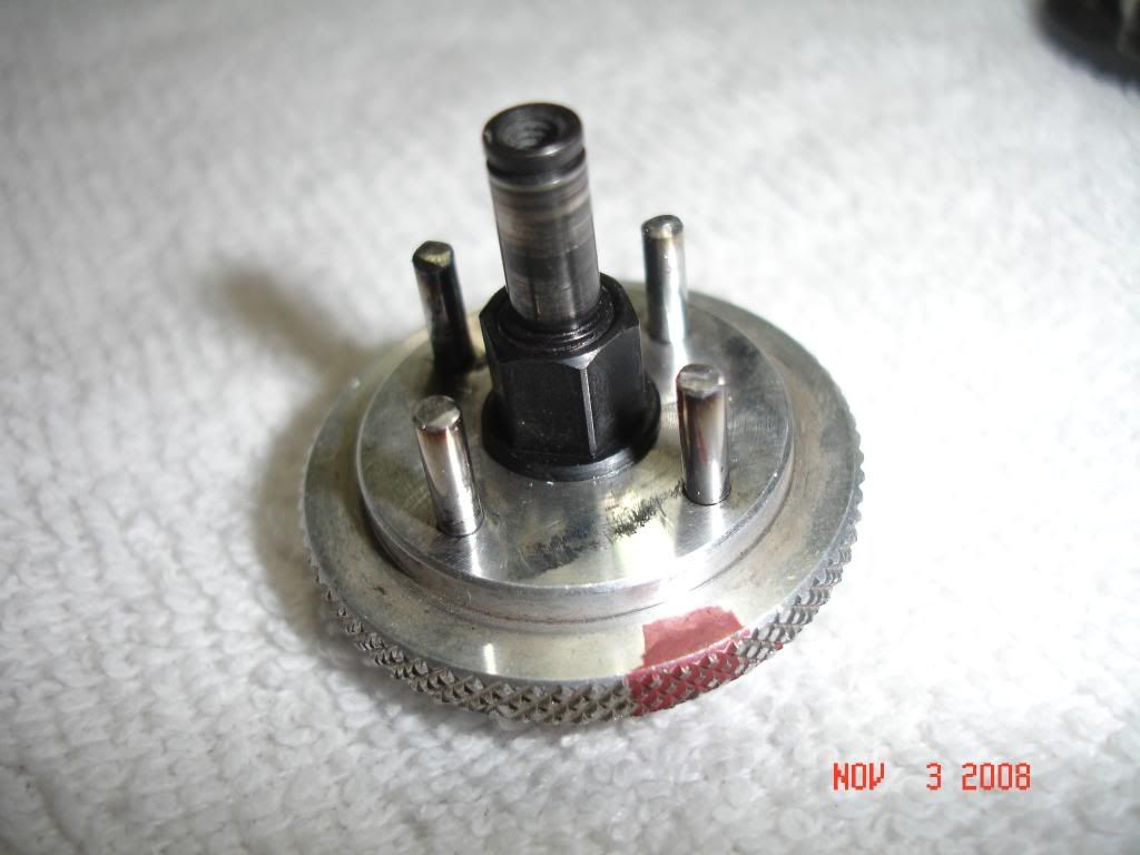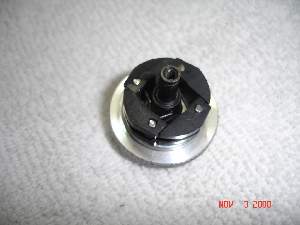 UE flywheel with the stock clutch nut, elektri-clutch shaft, and collet: