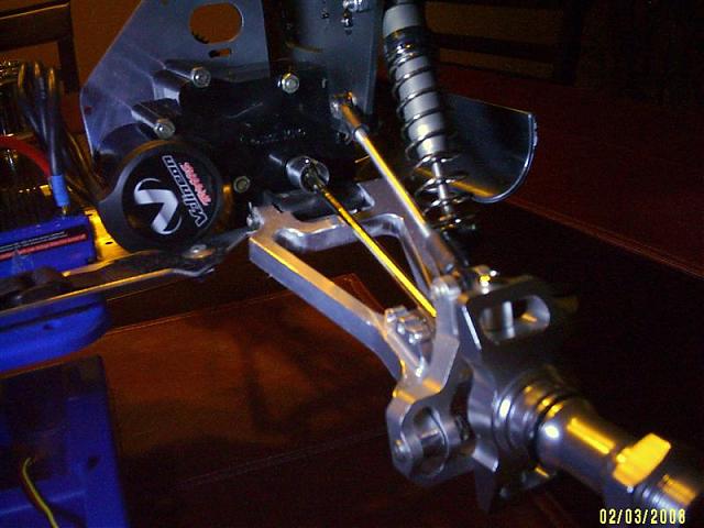 I know those shocks are beefy, but they are really bad. They wont hold up and the seals will take a dump on you. I say this because if your going to do that thing up right you dont want the bottom scraping its way and then you end up stripping a gear, folding an A Arm, or something else. remember my friend the MRC is not in supply of consistant parts availablity. And for the price of the shocks I mentioned to you. A set of 4 cost less then a set of 8 maxx shocks. Been using them for years and I will vouch for their stability. realize that I have been building and designing RC's for years so I do have alot of experiance in this. I cant say that money is a big problem for you since you are spending money on the other parts. On that dog bone, Well im going to have to check that out, I never really tied it. Mine is already titanium bones, they just braised them together at a machine shop using a plasma torch. Its pretty strong. I can bend them at all. But it's nmice to know there is another oppertunity out there. As far as the upper deck. Well the reason for that is because of the center of gravity. You know there was alreasy a mount for a single battey of that truck to begin with. if you removed that and the other end that held the mechanicle speedo, then you have now room to place 2 batteries side by side. They will weigh more than the ESC and the reciever combined even if they are lipo's and placed like that will leave no room for the speed control or reciever to sit. You dont even have to make a full deck like I did, there is another reason for the deck then just to place the controls. it acts like a control rod, keeps the truck from twisting too much upon impact with the ground. The stronger you make your chassis, the better the control. If you ever look at most 1/8th RC's you will notice they all have that feature. 4WD's have the bar for protection as well as stability. So though I like what your doing, I assure you I have been there done that for 5 years now.