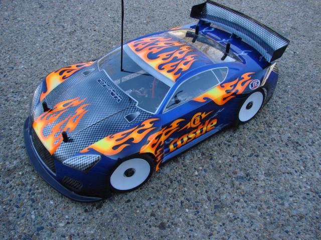 I took my GTP out last weekend for some test runs and its awesome.I ran 3s with a TE Neu 1512/1.5d and went to 4s and had some real fun.The body vibrates alot at high speed but its pretty easy controling it compared to a 1/10 car.Here are some pics.