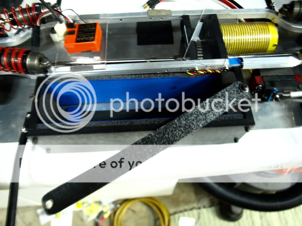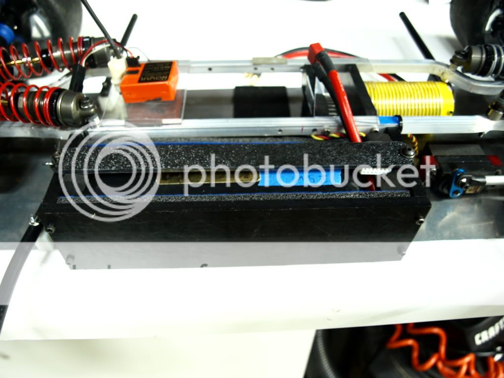 I did the same thing on my txt-1, put basically craft foam on the bottom and sides, stops the lipo getting damaged if it rattles about abit or shifts forward/back.