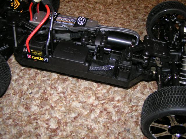 I picked about the smallest and lightest battery and motor that will give enough power, since they are on the same side. The mains are only 10 min, so that should do it. I already had the Lehner and used it in my other 1/8th buggy and it worked well on 4s, should be even better on 6s. Only running motor brakes to keep weight low, but that may not help with the balance, we will see. If I don’t like the plastic chassis or the balance or whatever, I can always get a techno or stock D8 chassis and slap on the parts (and RCM motor mount of course).