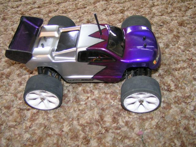 Started as a M18MT and I got the parts to change it to M18T. All the parts to change back to MT included (extra shocks, body, wheels/tires). Car only has 5 or 6 battery packs run through it. I thought it would be good in the house, but then I went and over powered it with the big Lehner motor. It is quite fast on just 2s, on 3s it would be stupid fast.