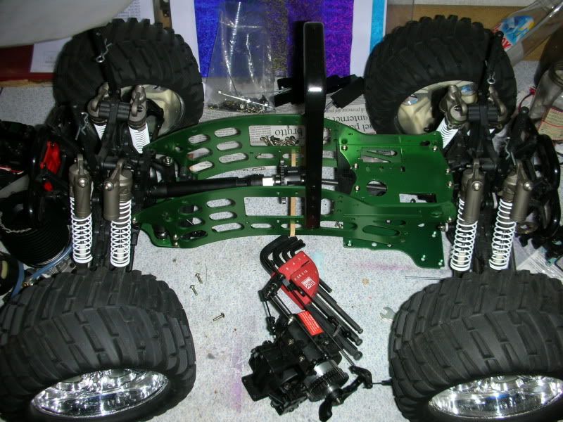 Distance between spur and pinion, holes for the tvp, distance from ground and position of the center diff are wrong. I milled the motor mounts by myself and builded two carbon plates to fit them in the chassis.
