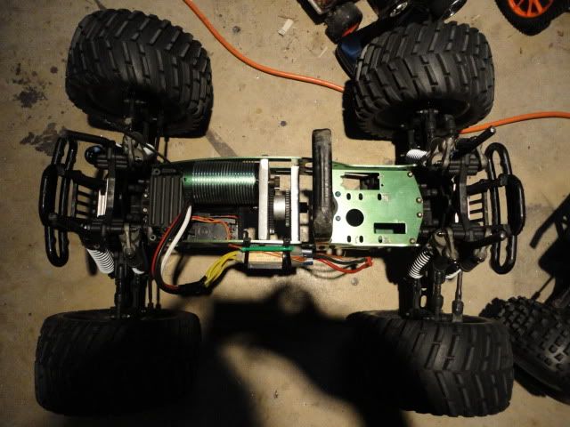 specs are a castle 1717 motor, mgm22418 esc, and a monster robot servo jr dsr8801. as of right now, i only have a 4500 30c 11.1v battery to run in it. i wont complete my motor mount or battery tray until i get the batteries i will use in the truck at six cells. enjoy