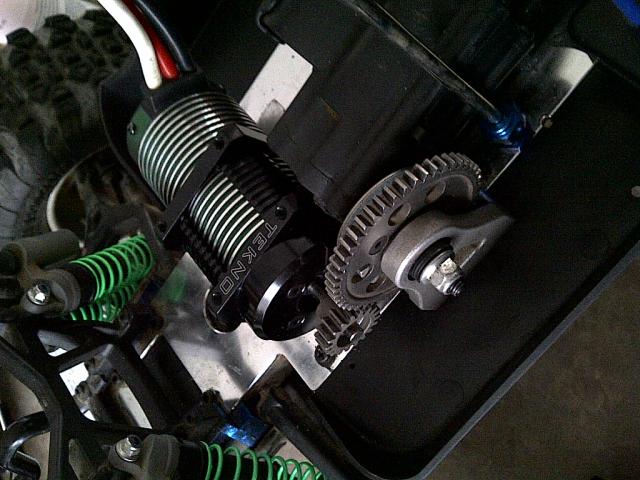 My only real mod that I've done other than the tranny is I had to grind the back of the transmission case down so I had enough room to fit the motor in there, and have some wiggle room for pinion choices. I did that to fit my 16t pinion in there, but I'm ideally using an 18t anyway. Just wanted some options.