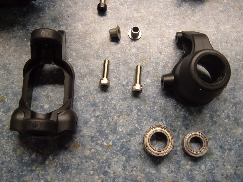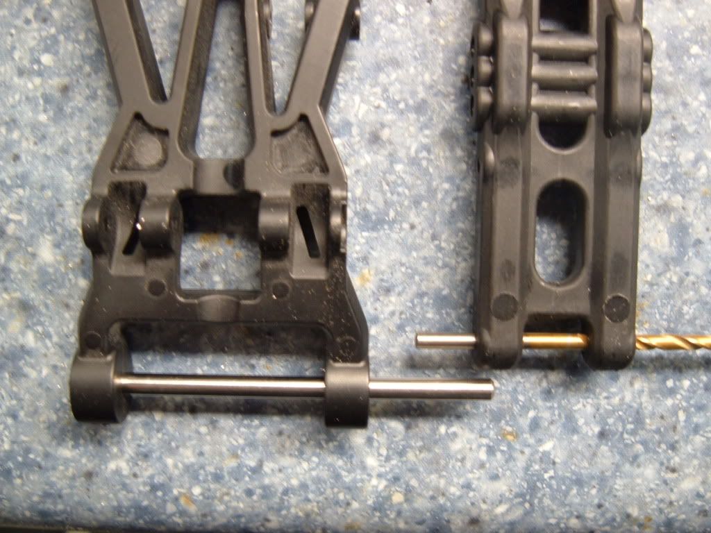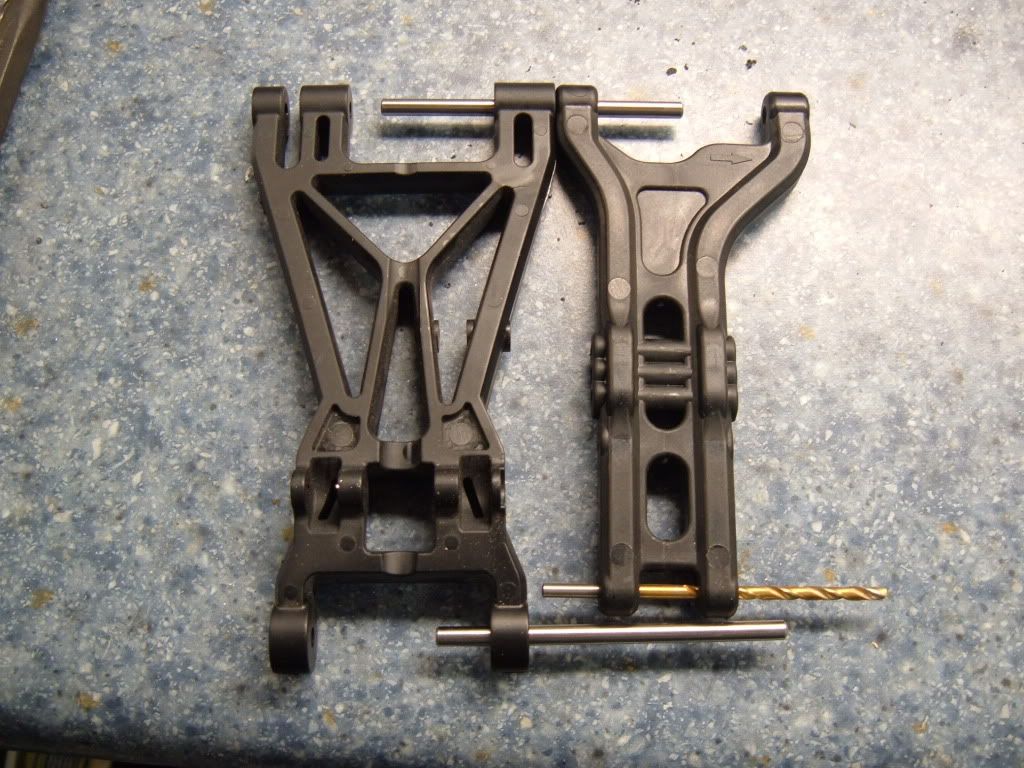The lower arms are a direct fit, no nothing needed to get them in. And you can use the stock lower inner cen hingepins too, they are captured via a nylock nut. Very nice indeed. You do have to flip the arm over to install it (compared to how it is mounted in the gst), but the arms are not handed like the savage so it does not matter.