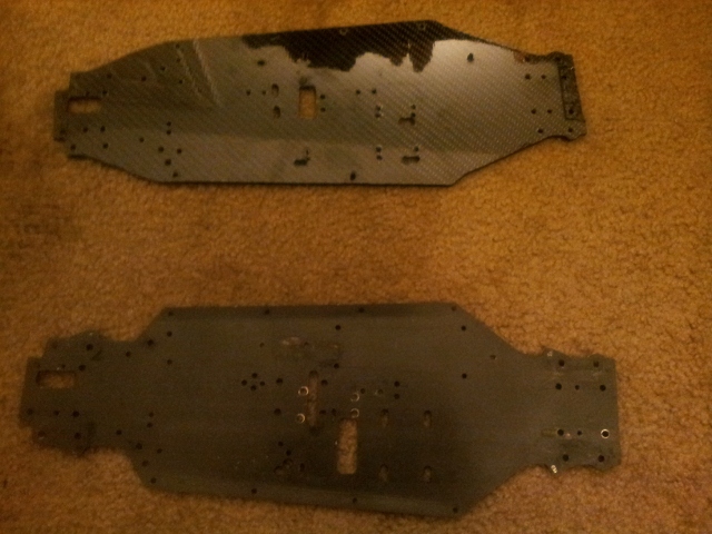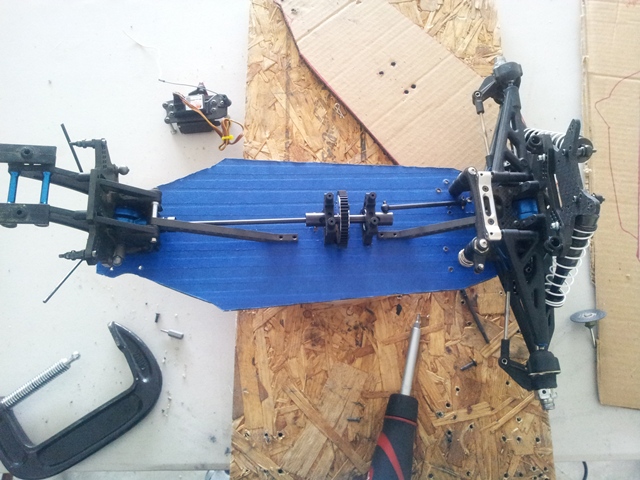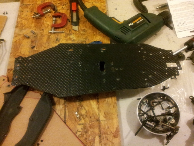 After finishing up my first spring project ahead of schedule, I finally got around to the second; tearing down my Mayhem ST and re-building it on a on off carbon chassis. Once I got the material in and the template mocked up, the first cuts were made. Picked up some super glue to seal up the chassis tonight and the rebuild can happen.