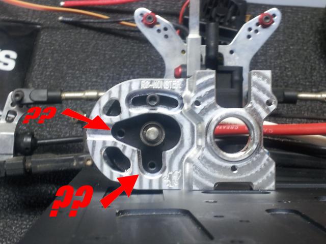 If you look at the pic below.....what am I missing? I know that the top bolt will adjust the mesh between my pinion and spur gear.....but how do I mount bolts to the other two? There is a big gap there....am I supposed to use some special bolt or something? I could use some advice....or even better yet , a pic so I know what I'm looking at.