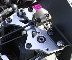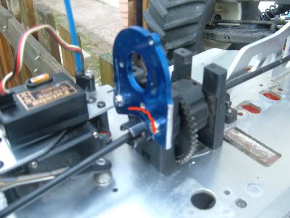 Now, to attatch the motor plate to the centre diff. I didn't think that two 2.5mm self tapping screws would cut it. I took the drill to the holes and enlarged them to 3mm. Then I counter-sunk the inner side (Diff gear side) of that block to bolt the motor plate on. It seems prety solid. Next, the centre diff brace. As standard the centre diff brace is some space ship-shaped item instead of a simple square. If you cut this so that it looks like a bracket, one of these ( then you will be able to use the other side of the bracket to make the new 'bracket'. Now there is no flex in the mount as before. Now we have to mount the esc. From this picture: