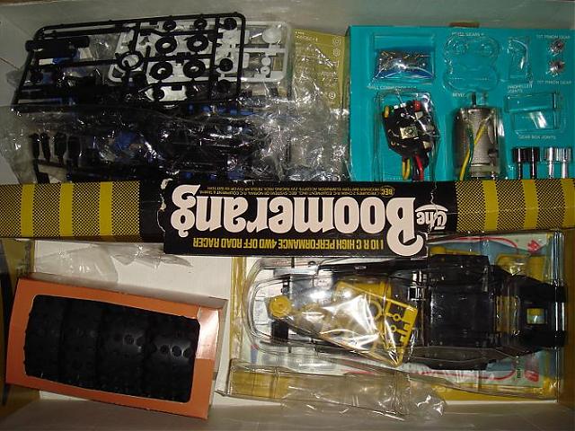 I think I'll buy Tamiya's rereleased Hot Shot buggy, since the Boomerang's chassis is based on the Hot Shot and thus I can have two legendary ancient buggies at my hands.