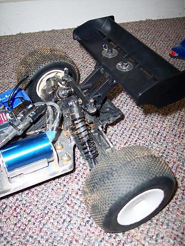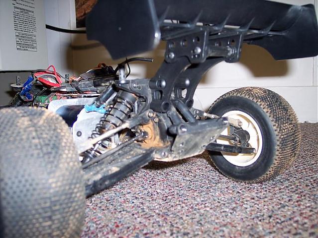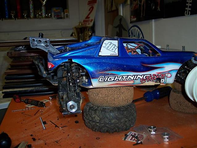I almost got her finished up, i wouldnt recomend the parts i used since it required alot of modifying and moving the shocks to the front side of the arms and tower and also removing the rear swaybar. Im not sure how its gonna work out losing the sway bar but im sure i could think of another way to mount it later if needed........what do you guys think?