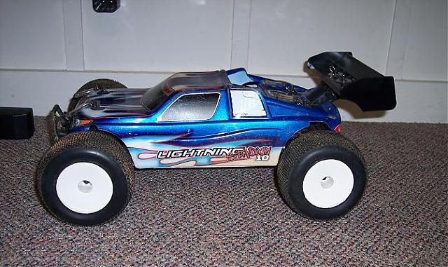 Sweet. I do think the wing is slightly big but a very clean job on the install. The lightning 10 buggy wing would be a perfect fit for it. A littel biger than the CRT.5 wing but not as big as a standard wing, AND..... Its black.