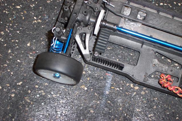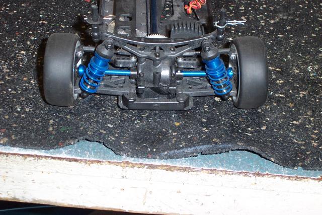 Here they are . The plastic FR diff was replaced with a steel diff. that i turned into a slipper spool, to help save the drive train. This was done by removing the diff balls & replacing them with bussiness cards, to go against the diff rings. then you just tighen the diff . It works as a spool untill you take a hard hit on the FR end . Then it will slip just a little to help save your ring & pinion gear on the diff .