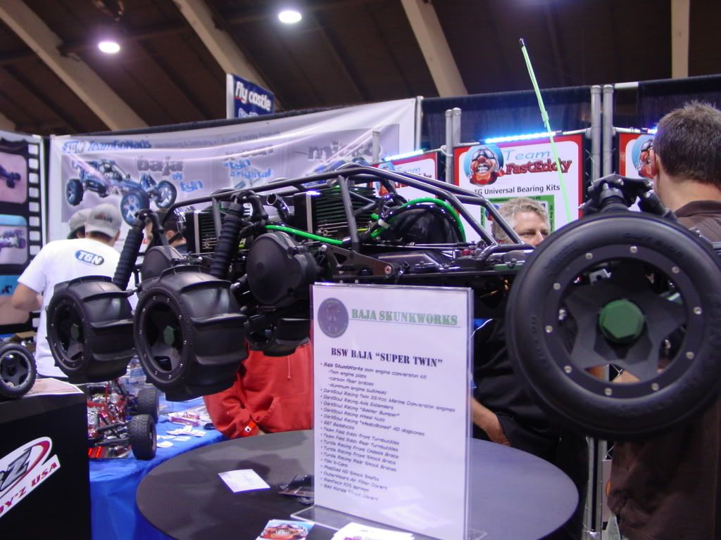 Well, I just got home. The greatest thing was, I met RC-M Mike!! Great guy. The E-Revo with the MMM looked pretty beefy. I saw that and another thing I thought was really cool, a 6x6, twin engine Baja.
