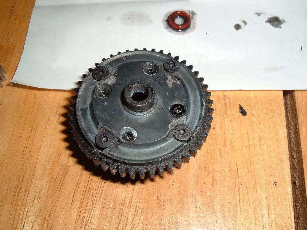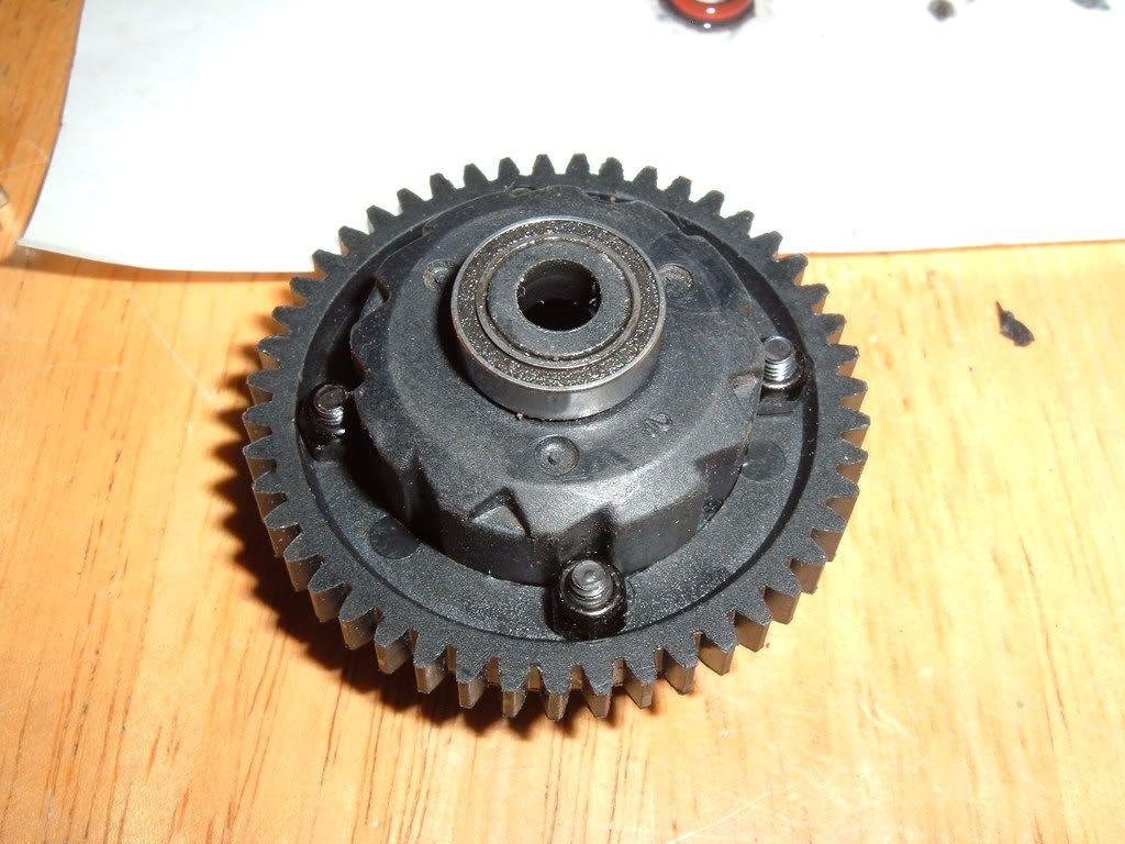 So I cut the inside out of the plastic gear until it fit over the diff cup. Then took the stock steel spur and ground off the teeth and the smoothed the cup side so that it was flat.