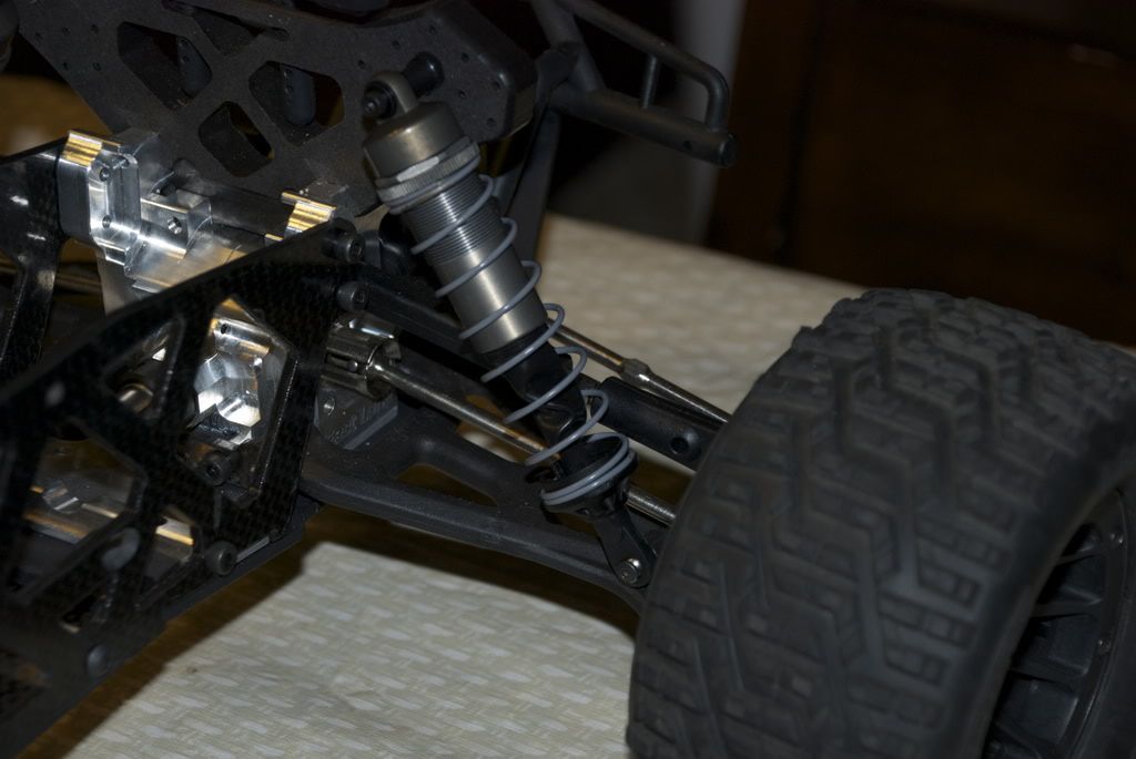 The center trans here will be running a Revo slipper driving a standard 1/8th center diff. It also serves as the front support for the motor plate so it can be adjusted from bird's eye view: