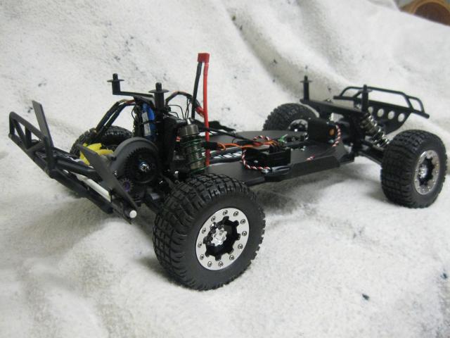 I just finished my slash and it has the Outlaw chassis, Losi eight buggy shocks, Feigao 7l motor (upgrade this later on), RC4WD bead locks, Pro-line carnage body and the mud flaps with Mod 1 gears. I'm still messing around with the set-up but It is all most done...