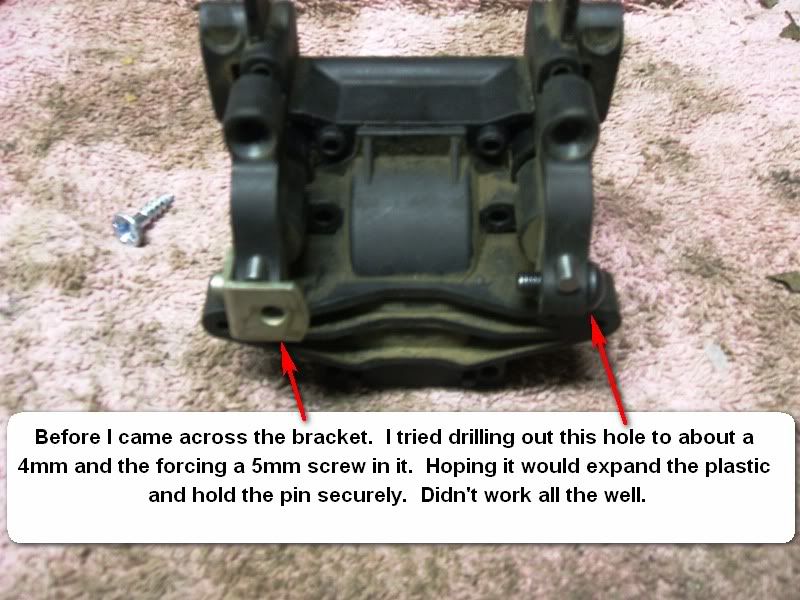 Before I put on a zip tie to keep the supports together, I tried putting a set screw in the side of the diff cover to reatain the pin. I could only fit a 3mm screw, and it wasn't quite enough to retain the pin (couldn't TQ enough), but perhaps if a flat spot was made on the end of the pin it would work better.