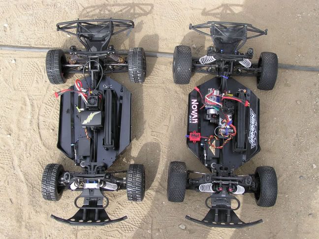 It looks like a stretched CRT.5 chassis. Has the mounting holes in the chassis for the nitro parts (not used).